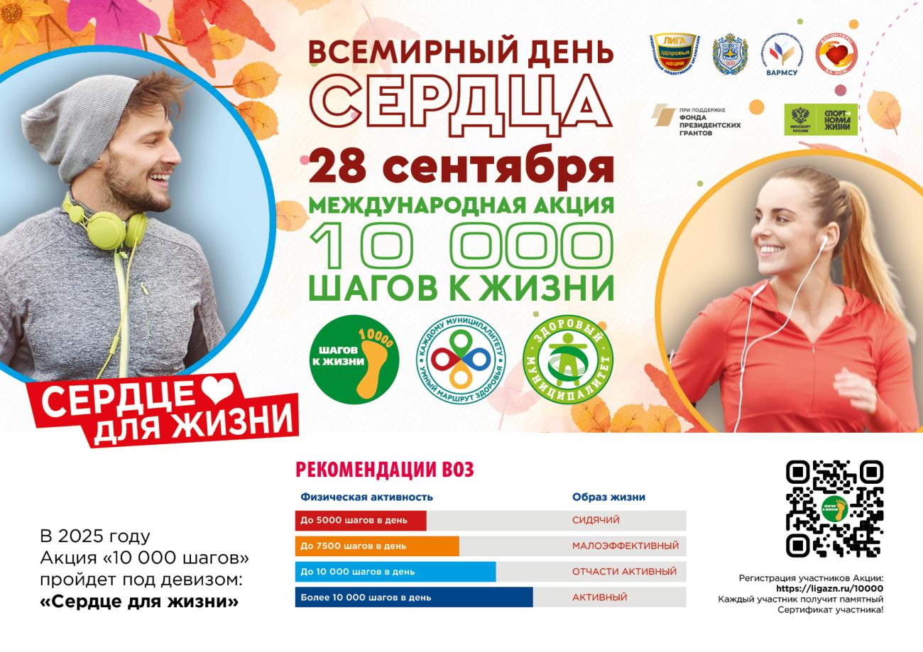 Всероссийская акция «10000 шагов к жизни» основана на рекомендации Всемирной организации здравоохранения проходить в день от 6 до 10 тысяч шагов для поддержания оптимальной физической активности человека.