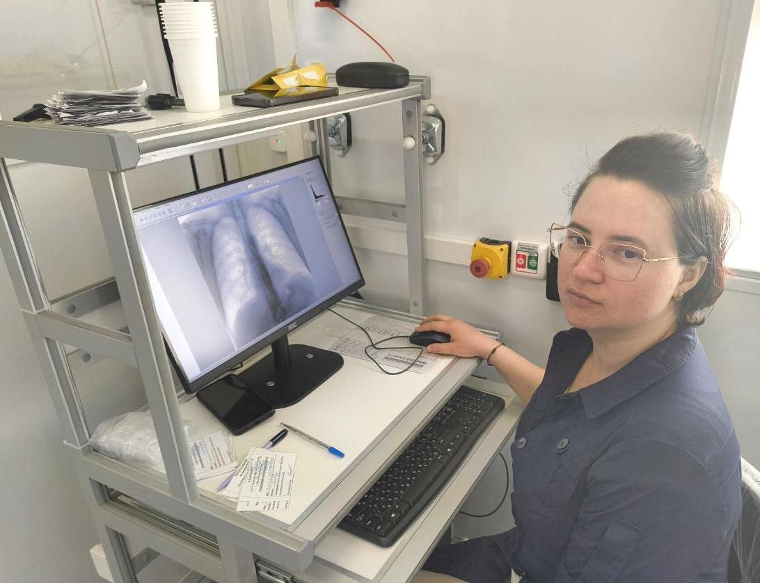 Врач-рентгенологи Марина Леонидовна Полохина и Елена Андреевна Гончарук в мобильном флюорографе Усольской городской больницы с помощью рентген-лаборанта Усольской ГБ Александра Мурашкина за три дня провели рентгенологические осмотры 346 человек