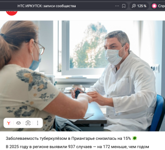 Телекомпания НТС - Иркутск в эфире поделилась информацией о заболеваемомсти туберкулезом в регионе. 2400 просмотров!